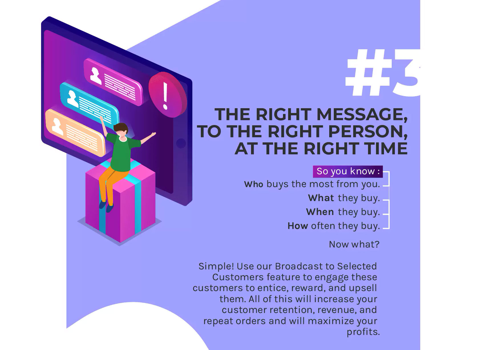 Knowing your customers' buying patterns equips you with the information to engage them effectively. InstanteStore's 'Broadcast to Selected Customers' feature allows you to directly communicate with these customers, providing opportunities to upsell, reward, and entice them, enhancing targeted marketing campaigns. This targeted communication can significantly increase customer retention, repeat orders, and ultimately, your profits.