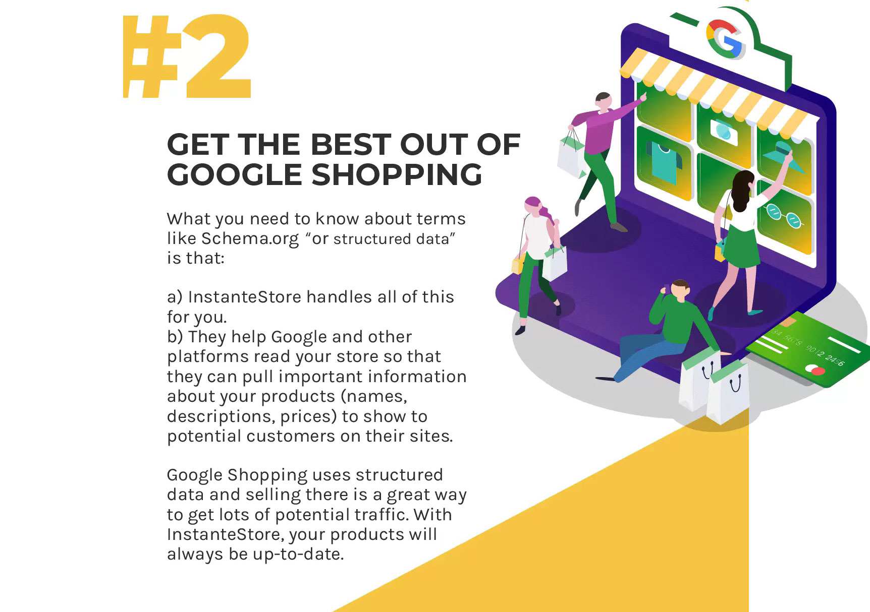 InstanteStore simplifies the process of getting your products listed on Google Shopping, a significant source of potential traffic and online visibility. By handling all the structured data or Schema.org requirements, InstanteStore ensures that Google and other platforms can easily read your store and display essential product information to potential customers, maximizing your reach and online sales potential. This ensures your product listings are always up-to-date and reach the right audience.